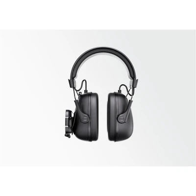 The device is completely wireless. The receiver sits on the side of the headset, giving you the freedom to move around as you please. The adjustable boom mic will pick up your voice clearly — even in noisy outdoor settings.