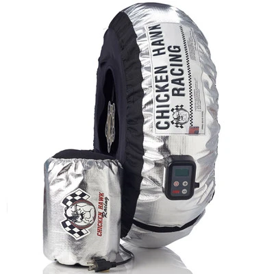 If you ride on the race track tire warmers are a must! Using warmers eliminates cold tire crashes and helps extend the life of those super sticky race tires. Chicken Hawk tire warmers are made in the USA and are used by more professional teams in the US than any other brand.
