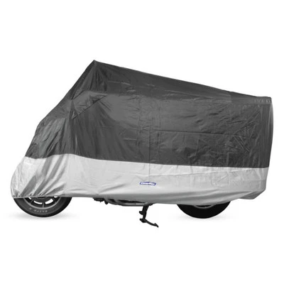 The CoverMax Standard Motorcycle Cover can be used for both inside and outside storage. It is a light weight water resistant cover with reinforced grommets sewn in and an elasticized bottom. When used for inside storage the cover should last multiple seasons without issue. If you are looking for a cover to use exclusively outside we would recommend taking a look at the CoverMax Deluxe Cover. The Standard Cover comes with a 2 Year Limited Warranty from the manufacturer, please see the package for more details. NOTE: this cover is designed for storage purposes and not open trailer hauling.