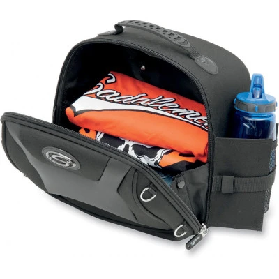 The Saddlemen FTB1000 Sport Sissy Bar Bag features a modern, sporty design with a balanced construction utilizing a mix of rugged materials to create a durable, water-resistant piece of luggage.
