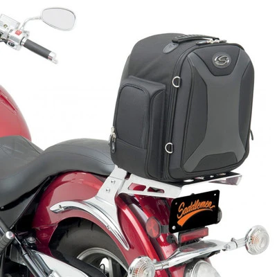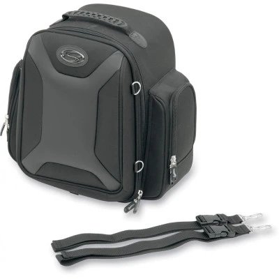 The Saddlemen FTB1500 Sport Sissy Bar Bag features a modern, sporty design with a balanced construction utilizing a mix of rugged materials to create a durable, water-resistant piece of luggage.