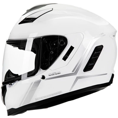 Stryker is Sena’s latest full-face smart helmet, equipped with both Mesh Intercom™ and Bluetooth® Intercom technology plus premium speakers and microphone by the audio experts at Harman Kardon. Stryker is a sport touring helmet with seamlessly integrated speakers and microphone that bring a new level of precision and clarity to in-helmet audio. The Stryker helmet is packed with premium features including an integrated taillight and a convenient retractable sun visor. The helmet features a DOT-rated composite fiberglass shell and offers an impressive seven-vent design with an intermediate oval fitment. Stryker’s features include: